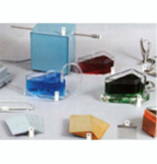 Hull Cell 267 ml in Perspex or PVC plain body; and with fittings like air agitation coil, air pump or reciprocating agitator, immersion heater, thermostatic control, polished brass and MS cathodes, wire and wireclips, special hull cell anodes hot water bath controls, 0-60 min. Timer, glass thermometer 1000C, DC rectifier for ripple free power supply 0-8V/0-5A or 0-12V/0-10 Amp., supplied as a kit or in loose parts. Optional : 1000ml Hull Cell, double chambered PVC Hull cell and other fittings as desired.