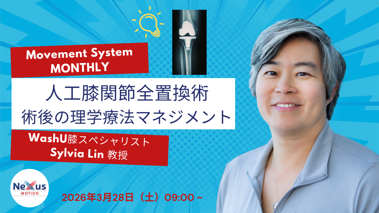 日本において膝の痛みの問題を経験する人の割合は、世界的に見ても非常に高い。多くの理学療法士は、人工膝関節全置換術(TKA)後の患者を担当しているが、術後ケアにおいても運動の質は重要である。今回のウェビナーで受講者は、人工膝関節全置換術後の理学療法マネジメントに関する知識を習得する。シルビア・リン博士は、組織ストレス理論および最良のエビデンスに基づき、術後の注意点について解説する。