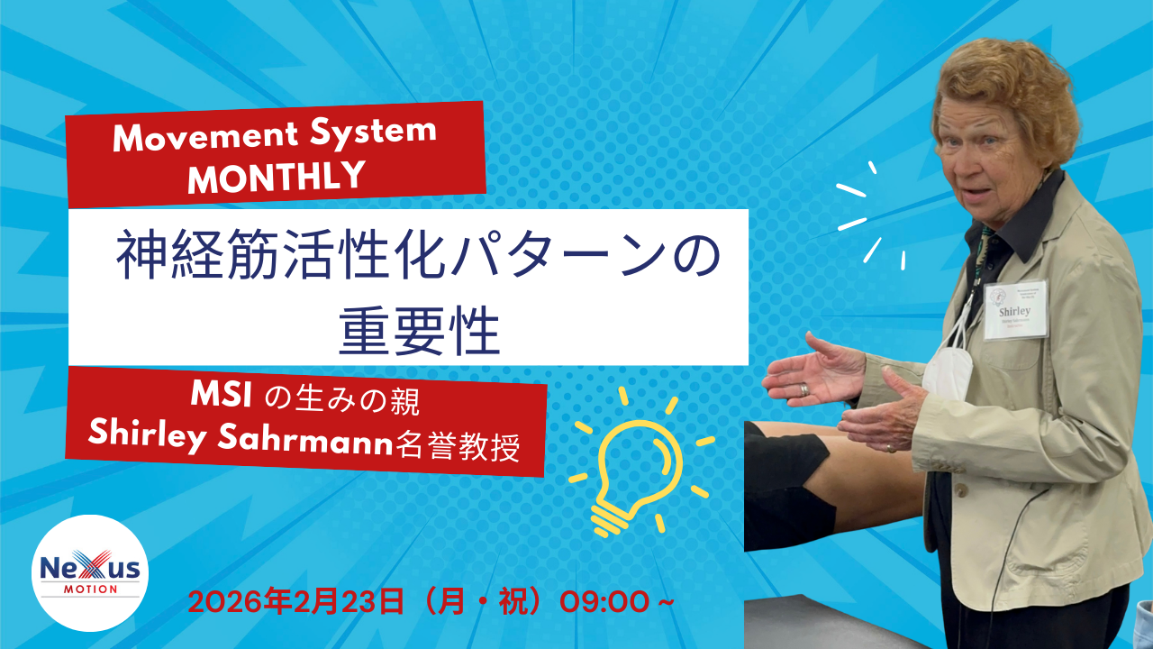 日本ではなかなか聴講できないゲスト講師たちから、毎月ムーブメントシステムの内容を臨床に繋げやすく学習していきます。MSIが大好きな日本全国の仲間たちのコミュニティーが、ムーブメントシステム・マンスリーです。