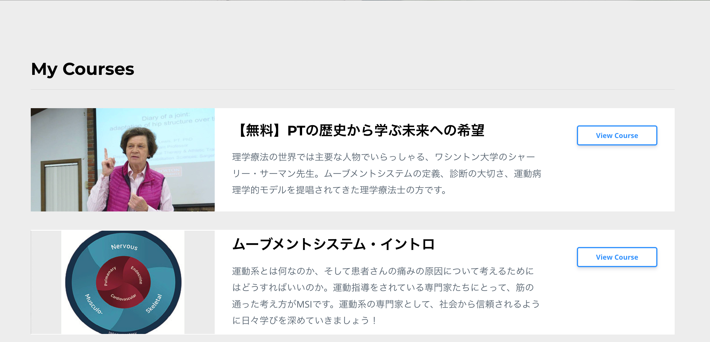 ログインすると送られたコンテンツがマイラブラリーに既に追加されていますので、 View Course から視聴してください